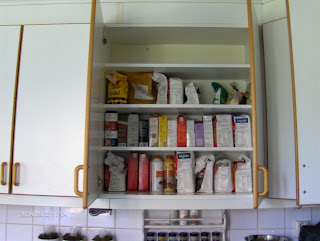 Så alla bakgrejor som stått ihopa tryckta och på varandra i skafferiet fick nu ett eget skåp, lycka:)